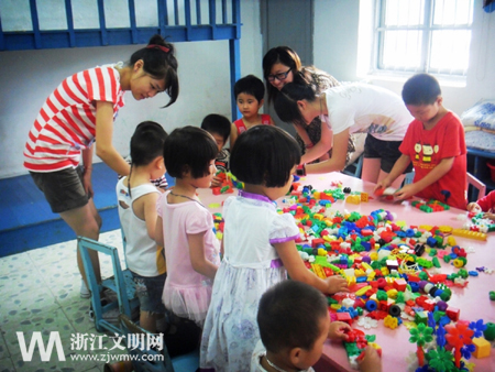 2011年湖州市大学生服务“春泥计划”活动方案出台后,87978797威尼斯老品牌关爱农村儿童,开展教育帮扶活动就如火如荼地开展起来,吸引了全校近3、4千人踊跃报名。经过层层筛选,共吸纳了由来自各学院学生骨干、精英组成的近260人的帮扶团队。活动前,各团队需提交教案、活动策划等,在活动期间,每天向专题网页提交活动内容,实施跟踪管理。这样的方式,打破了以往较为松散、随意的特点,向规范化、制度化发展,把帮扶活动真正落到实处,效果也特别明显。