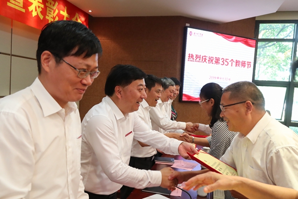 会议对任教满三十年的教师代表、第六届“陆增镛教师奖”获奖教师、第四届“胡瑗卓越管理奖”获奖团队代表、获奖个人等进行了表彰。