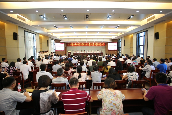 张立钦首先代表学校向辛勤工作在一线的全校教职员工,向附属单位全体工作人员和全校离退休老同志致以节日的祝福和良好的祝愿,并从人才培养、学科与师资队伍建设、科研与服务地方、开放办学、服务保障、党建与思政工作等方面系统回顾了学校上半年各项工作取得的新业绩。