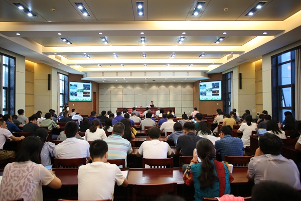 9月18日下午,为认真贯彻落实市委市政府生活垃圾精准分类的有关会议精神,威尼斯官网在明达楼126会议室开展了垃圾分类知识专题讲座。本次讲座由湖州市机关事务管理局节能处处长、湖州市直机关事业单位垃圾分类办公室主任汪守东主讲。副校长陈亚明出席。相关职能部门负责人、机关党委各支部书记、各职能部门与二级学院垃圾分类负责人员和教师代表参加了讲座。