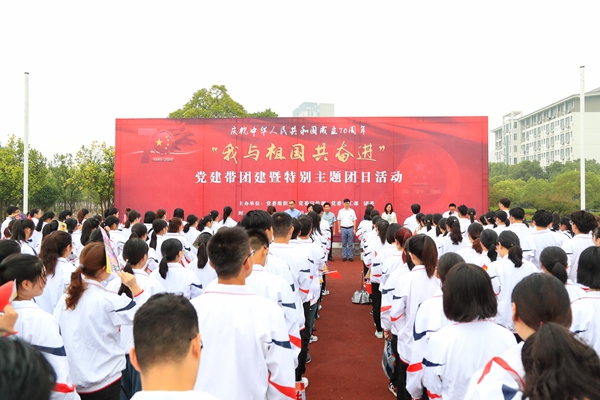 升旗仪式后,蒋云良发表了情真意切的感言,他对新中国成立70年来迢迢奋斗路感慨不已,并与在场师生分享了三点内涵丰富的个人感悟。首先,他引用西汉史学家司马迁的“常思奋不顾身,而殉国家之急”一语,指出“爱国是每个人最基本的素养”,并提倡广大青年以真才实干、以服务奉献爱国,自觉地将个人事业与国家发展、民族复兴紧密相连。其次,他引用开国领袖毛主席的“为有牺牲多壮志,敢教日月换新天”一句诗词,鼓舞大家用奋斗书写人生,特别是青年大学生,要敢于吃苦、敢于磨炼,通过自己的努力奋斗实现美好的生活。最后,他以习近平总书记“中国梦是历史的、现实的,也是未来的;是我们这一代的,更是青年一代的”号召,鼓舞全体师生应当不忘初心、牢记使命,在历史与现实的对话中获取奋斗的智慧、汲取奋进的力量。