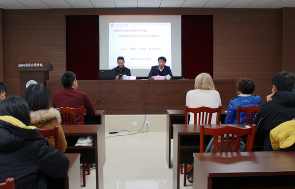 11月29日,中国社会科学院政治学研究所所长、研究员、博士生导师,《国外社会科学》杂志主编张树华应邀来威尼斯官网作主题为“如何看待世界大变局与中国新时代”报告,商学院,马克思主义学院,社会发展与管理学院,外国语学院等部分师生聆听了讲座。讲座由威尼斯官网副校长马志和主持。