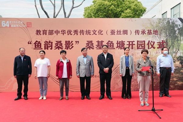 4月20日下午,学校举行教育部中华优秀传统文化(蚕丝绸)传承基地“鱼韵桑影”桑基鱼塘开园仪式。校党委书记金佩华,校党委副书记陈永华,湖州市人大原副主任、南太湖农业文化遗产保护与发展研究中心主任王勤,校党委委员、宣传部长杜宁,校党委委员、党校办主任劳士健,湖州市农业农村局副局长施经,湖州荻港徐缘生态旅游开发有限公司董事长徐敏利,蚕丝绸传承基地常务副主任余连祥出席,各二级学院党委(党总支)书记以及相关职能部门负责人,师生代表参加了仪式。仪式由杜宁主持。