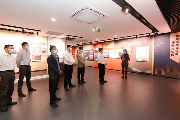 在讲解员的引导下,全体领导干部依次参观了“苕霅清风”“清廉湖州”“正风反腐”三大主题展厅,对湖州历史人物清廉事迹、清廉湖州建设的探索与实践、全面从严治党的实践有了深入了解。