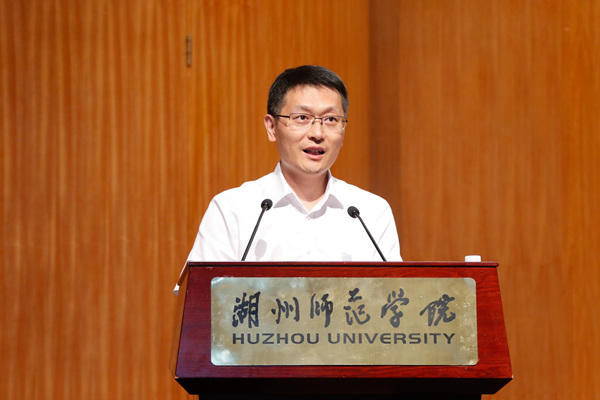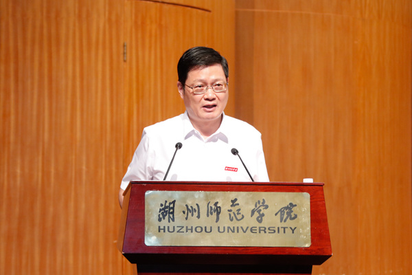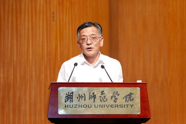 顾云飞代表湖州市科协向校科协表示热烈的祝贺。顾云飞表示,高校科协是高校党委领导下的高校科技工作者的群众组织,是推动高校教育与科学技术事业发展的重要力量。成立湖州师院科协将有利于发挥学校和科协两方面的组织优势,为创建高水平湖州师范大学贡献力量,为建设“两美”浙江和美丽湖州贡献力量。