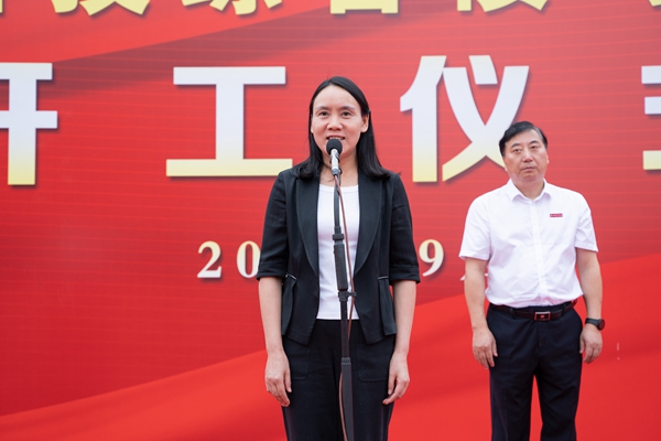 阮叶萍宣布项目正式开工。伴随礼炮齐鸣,旌旗飞扬,出席仪式的各位领导共同为项目奠基、合影。