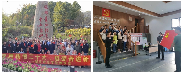 理学院、外国语学院师生党员先后来到安吉余村,沿着习近平总书记走过的村路,实地察看了绿色生态的村镇建设,近距离了解余村在“绿水青山就是金山银山”理念指引下,从靠山吃山到养山富山、走生态绿色之路的发展历程,切实感受“两山”理念在余村的生动实践。理学院还与湖州市滨湖高级中学开展了二十大精神主题联学活动,党员们在活动中以《科教兴国 人才强国》为主题,围绕二十大报告中发挥教育的基础性作用,教育优先发展,为党育人,为国育才,办好人民满意的教育,加快建设高质量教育体系等内容开展了学习。