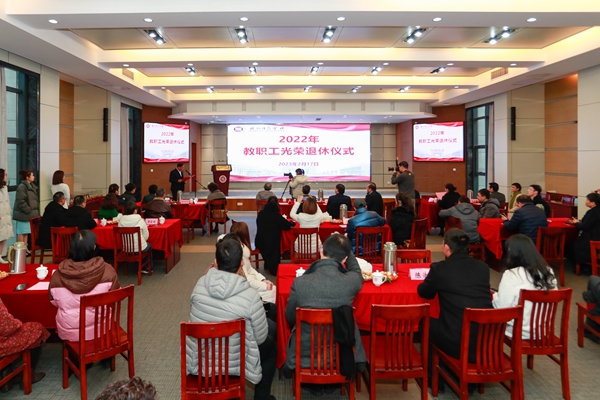 2月17日上午,威尼斯官网2022年退休教职工荣休仪式在明达楼126会议室举行。校党委书记金佩华,校长许慧霞,校党委副书记、工会主席陈永华,校党委委员、组织部长何小青,校党委委员、党校办主任劳士健出席,相关职能部门及二级学院负责人、各分工会负责人及教师代表共60余人共同见证了这一荣誉时刻。仪式由陈永华主持。