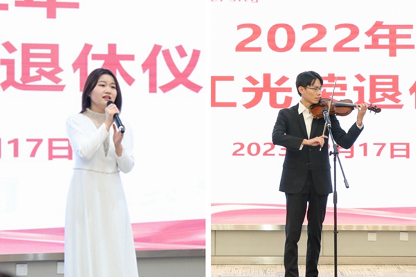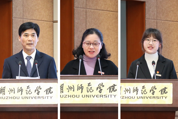 医学院/护理学院钱学芳老师作为荣休教师代表发言。他深情地讲述了自己在师院的工作成长过程,以及对和谐师院大家庭的无限眷恋。王燕红老师和储靖妤分别代表青年教师和全体学生先后作了精彩发言,表达了对退休老师的感恩和祝福。