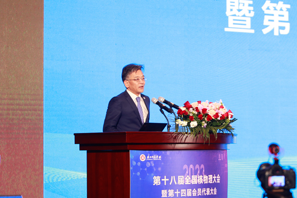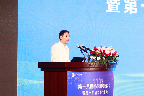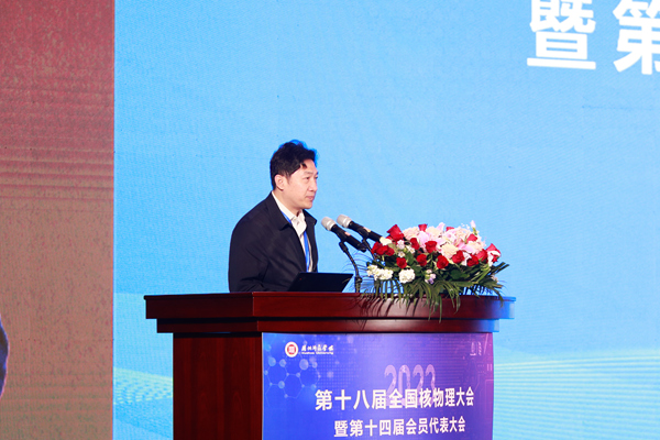 陈东风宣读中国核学会贺信。贺信指出,全国核学会核物理分会成立以来,加强了核物理研究在我国国民经济方面的应用研究,提升了我国核物理的研究能力与水平,团结凝聚了核物理研究领域的优秀人才,壮大了中国核学会的实力和影响力,为我国核事业建设作出了重要贡献。
