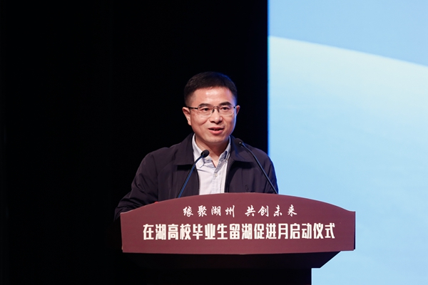 夏坚定作湖州城市综合推介,他说,湖州地处长三角中心区域,交通便利、区位优势明显。湖州生态环境优美,太湖、古镇、竹乡、名山、湿地在这里交织成画。湖州是上海大都市圈、杭州都市圈和环太湖经济圈的战略交汇地,正在加速转化为接沪融杭、协同发展的战略胜势。湖州构建了以南太湖新区和长三角产业合作区为龙头的“2+8”高能级平台体系,正在全力打造半导体及光电等八大新兴产业链。当前的湖州正在加快打造“六个新湖州”,高水平建设生态文明典范城市,比任何时候都更加需要人才、渴望人才,希望同学们留在湖州、扎根湖州,与湖州共成长、共奋斗,在湖州成就美好人生。