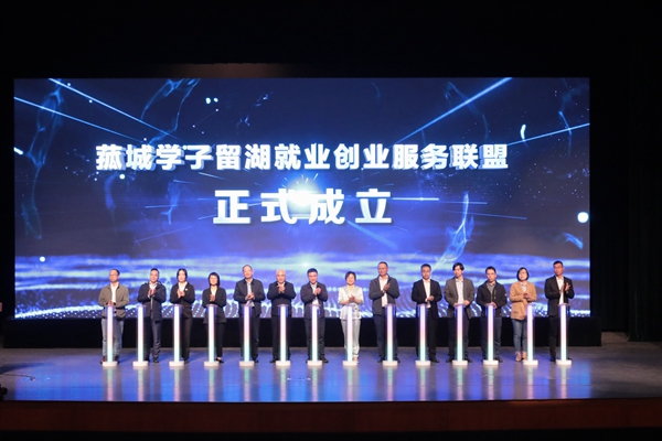 仪式最后,与会领导与在湖高校、用人单位代表共同启动成立“菰城学子留湖就业创业服务联盟”。