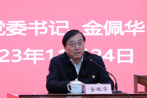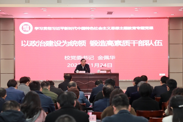 11月24日下午,校党委书记金佩华以《以政治建设为统领 锻造高素质干部队伍》为题讲授主题教育专题党课。校领导班子成员、全体中层干部参加。本次专题党课由校党委副书记陈永华主持。