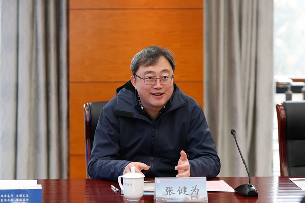 金佩华对张健为一行表示热烈欢迎,并从办学历史、党建思政、人才培养、学科建设等方面介绍了学校情况。他指出,学校目前正按照习近平总书记主政浙江期间来校视察时的重要指示精神和“有理想、有道德、有知识、有志向、有用、有为”的“六有”人才培养要求,奋力推进学校高质量发展,加速创建高水平“湖州师范大学”。