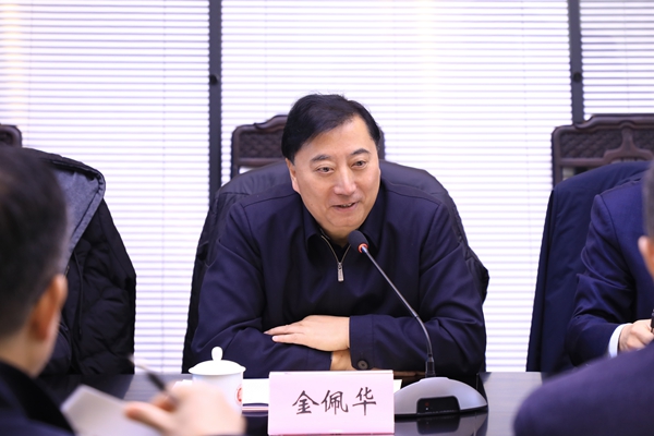金佩华代表学校对蔡旭昶一行来校调研指导表示欢迎和感谢,并就学校概况、全面从严治党情况等内容进行汇报。