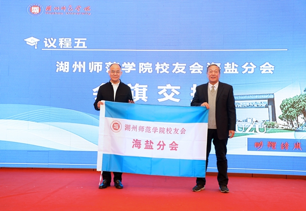 海盐分会新任会长王平、桐乡分会新任会长张建林作表态发言。沈丁华代表嘉兴校友会向海盐、桐乡分会顺利换届表示祝贺并致词。