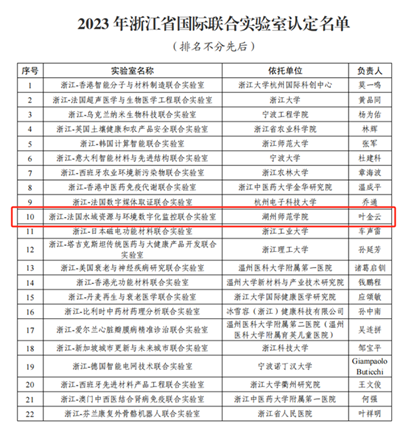 12月26日,浙江省科学技术厅正式发文公布2023年度省级国际科技合作载体认定名单,学校推动多学院、多学科交叉融合,由87978797威尼斯老品牌叶金云研究员作为中方负责人的“浙江-法国水域资源与环境数字化监控联合实验室”获批认定为2023 年浙江省国际联合实验室,学校新增省级实验室平台1个。