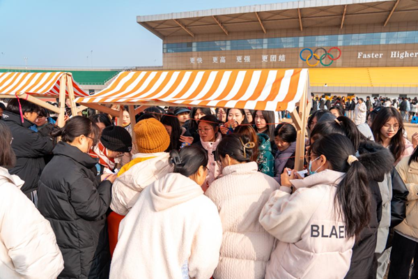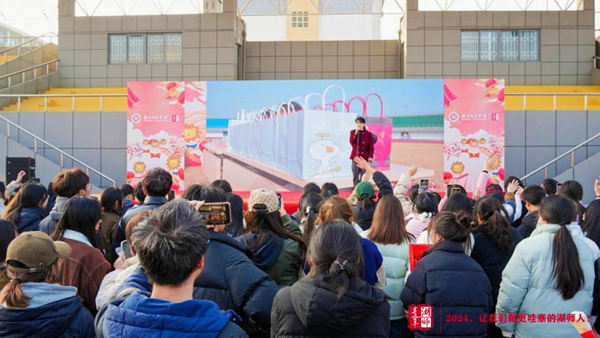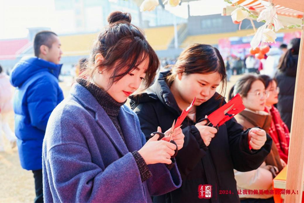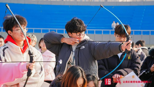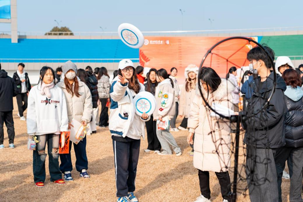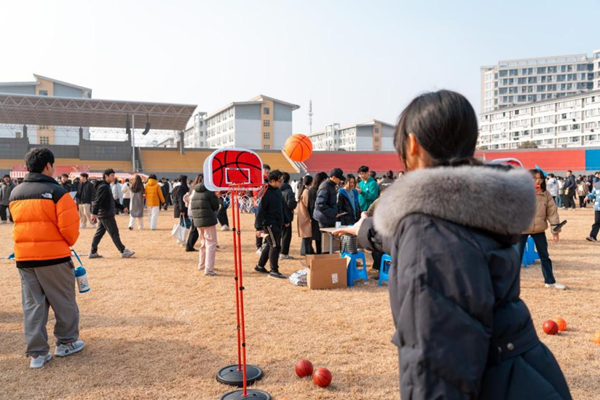 活动现场热闹非凡,各学院精心组织了“十全十美”运动集市,户外飞盘、陆地冰壶、射击打靶等丰富多彩的趣味项目成为同学们奔走相告的打卡热门。同学们在自己擅长的摊位上燃烧卡路里,感受运动带来的激情和快乐。校园各大社团组织的社团集市也门庭若市,颇有年味的手工剪纸、年画、对联等丰富多彩的社团作品展示和充满传统趣味的手工体验,集中展示了一场文化与运动碰撞的“游园会”。在最青春浪漫的年纪当然不能少了音乐,师生期盼的元旦节目也在主舞台区欢乐上演,花样跳绳、萨克斯演奏、歌曲演唱、留学生舞蹈等精彩表演展示了音乐嘉年华的独特魅力,为同学们从视觉、听觉、参与、互动等方面提供了全方位的感受和体验,把舞台给到每一位学生参与者,以此激发全体学生的青春活力与朝气。
