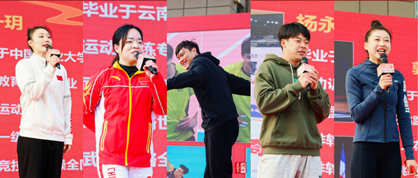 体育学院的“明星”体育教师们“火力全开”点燃活动现场:国家级排球健将、原浙江男排主攻手金志鸿老师,竞技健美操运动员、国家级运动健将赵一玥老师,世界跳绳比赛冠军郭思化老师,武术套路全国冠军、武术国家级运动健将郑少谊老师,轮滑球国家级健将运动员、冰球国家级健将运动员杨永昭老师共同助阵,现场秀竞技展风采,身体力行号召同学们热爱运动、追求健康,现场回应着此起彼伏的掌声和尖叫声。