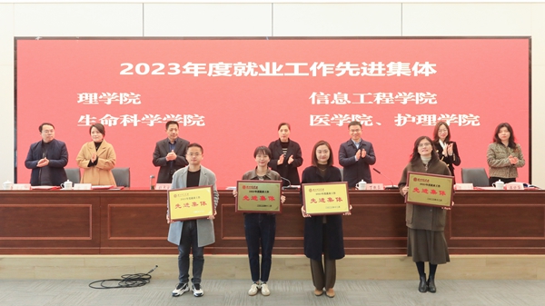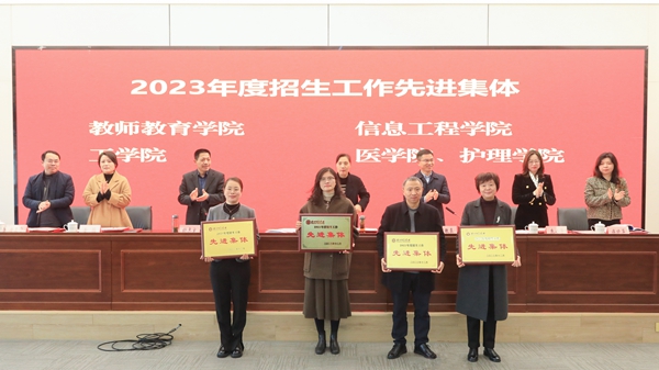 舒志定宣读表彰文件。教师教育学院、信息工程学院、工学院和医学院、护理学院被评为2023年度招生工作先进集体;理学院、信息工程学院、生命科学学院和医学院、护理学院被评为2023年度就业工作先进集体;林银等18人被评为2023年度招生工作先进个人;杜宗斌等35人被评为2023年度就业工作先进个人。与会领导为获奖的先进集体和个人颁奖。