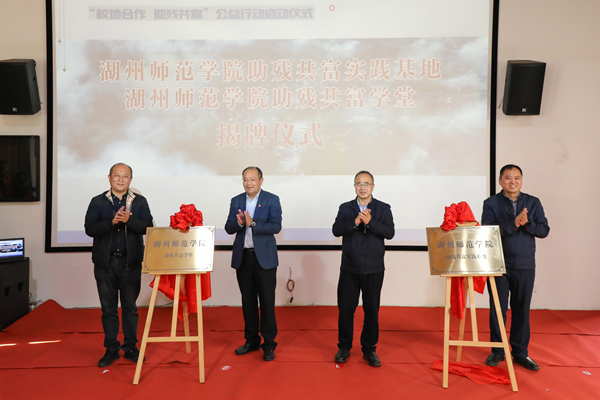仪式上,与会嘉宾一同为“助残共富实践基地”和“助残共富学堂”进行了揭牌并为志愿服务团授旗。威尼斯官网经济管理学院、德清县残联、莫干山镇政府共同签署了党建联建协议和“校地合作 助残共富”合作协议。