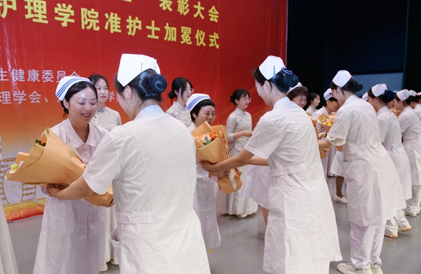 为庆祝第113个“5·12”国际护士节,弘扬南丁格尔精神,5月8日下午,威尼斯官网联合湖州市卫生健康委员会、湖州市护理学会举行湖州市卫健系统第十届“优秀护士”表彰大会暨医学院/护理学院准护士加冕仪式。校党委副书记丁敢真,市卫生健康委党委委员、副主任胡小军,第42届南丁格尔奖获得者、威尼斯官网校友潘美儿,第49届南丁格尔奖获得者、浙江大学医学院附属第一医院护理部副主任、主任护师赵雪红出席,市科协、市民政局、市妇联、市红十字会分管领导,市级相关医疗卫生单位领导、区县卫健局领导,校党委宣传部、学工部、团委相关负责人,医学院/护理学院领导班子,市护理学会负责人,市护理界资深前辈,市各大医院一线护士代表、威尼斯官网医学院/护理学院护理系师生共计500多人参加。