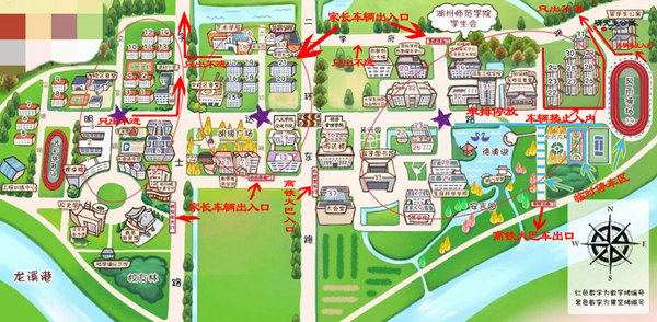 1.东校区正大门(西门)作为高铁接送学生车辆专用通道,东校区北门、中校区南门、中校区大学生活动中心旁侧门(二环东路门)、西校区正大门(二中对面)作为社会车辆进校通道,校区所有门口均可出校(东校区研究生公寓大门和东校区南门两个门只出不进)。