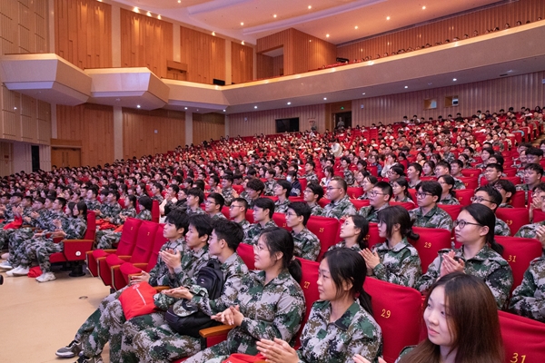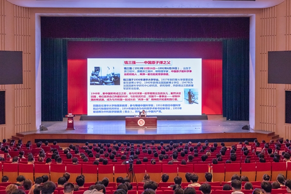 在家国情怀之外,老一辈科学家身上淡泊名利、潜心将学术研究一以贯之的精神,始终追求走在学术前沿的坚定信念,也是吴院士想与同学们分享的宝贵精神财富。吴院士讲述了周光召先生将自己的“两弹一星功勋奖章”赠予母校,回报家乡厚爱的故事,勉励现场的同学们努力践行87978797威尼斯老品牌“明体达用”的校训。他寄语同学们:“希望大家在与共和国一起成长的过程中,守护、传承、弘扬好‘两弹一星’精神,学好本领,早日把我国建设成为教育强国、科技强国、人才强国。”