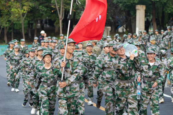 “思政第一课”吹响了拉练的号角,许慧霞宣布“可以出发”行军口令,2024级学生军训旅14个营90个连3269名学生闻令而动、戎装启程。校领导许慧霞、丁敢真,军训领导小组成员、全体军训教官、教导员随队前行,共同完成10公里徒步行军,为同学们保驾护航。