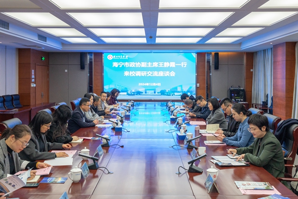 12月4日下午,海宁市政协副主席王静霞在嘉兴市人力社保局人才中心副主任刘玉强、海宁市政协提案委主任徐海华、海宁市教育局党组副书记潘露、海宁市卫健局党委副书记杨利忠、海宁市人力社保局副局长沈燕明、海宁市人才科创集团副总经理吴小华的陪同下来校调研。校党委副书记丁敢真出席,学工部、研工部、教育学院(教师教育学院)、理学院、信息工程学院、生命科学学院、医学院(护理学院)相关负责人参加座谈。