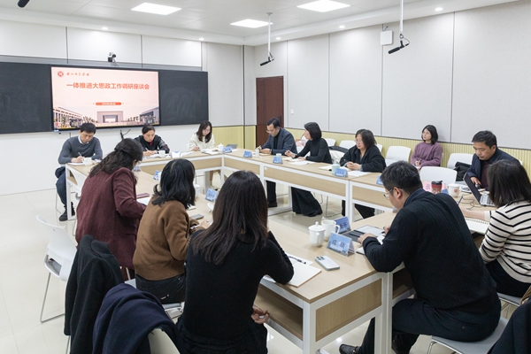 3月4日下午,学校在马克思主义学院召开一体推进大思政工作调研座谈会。校党委书记许慧霞,校党委委员、宣传部部长朱小芳,党委委员、党校办主任沈国丰出席,学工部、研工部、教务处、人文社科处、团委负责人,马克思主义学院班子成员,湖州市“大中小思政一体化名师工作室”负责人参加。会议由许慧霞主持。
