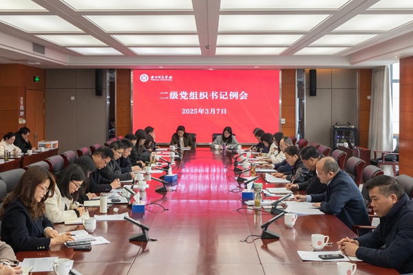 3月7日上午,学校召开2025年第1次二级党组织书记例会,部署推进学校党的建设工作。校党委书记许慧霞主持会议并讲话,党委副书记陈永华,纪委书记任伟海,党委委员、组织部长劳士健,党委委员、宣传部长朱小芳,党委委员、党校办主任沈国丰出席会议。各二级党组织书记、党务部门负责人参加会议。
