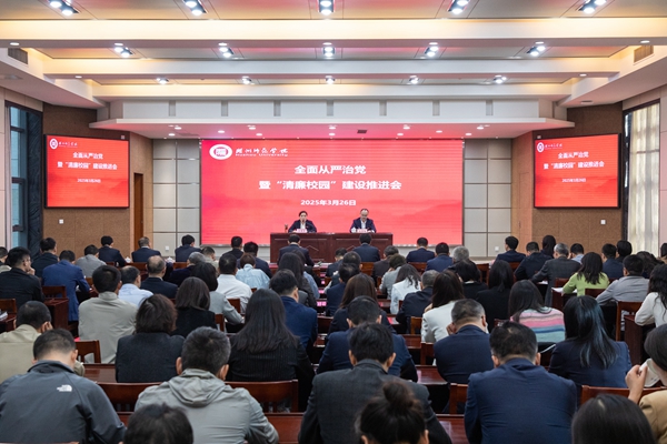3月26日上午,学校召开2025年全面从严治党暨“清廉校园”建设推进会。校党委书记许慧霞主持会议并讲话,对深化全面从严治党工作作出全面部署,并提出工作要求。校纪委书记、监察专员任伟海部署纪检监察工作。校领导班子成员出席,学校中层干部参加会议。