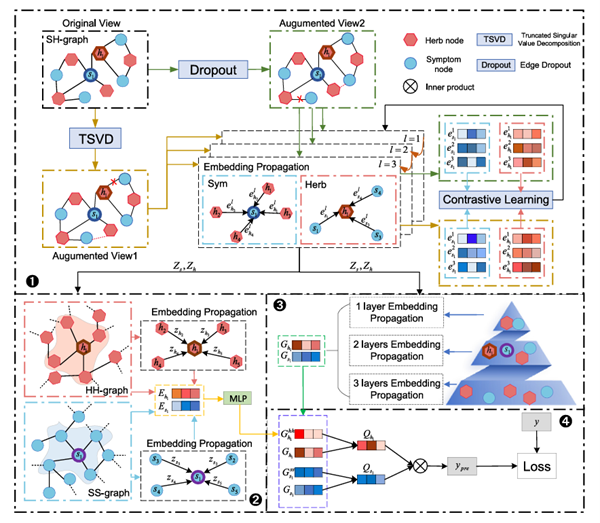 该研究提出了一种基于对比预训练和层次结构网络的中药处方推荐模型TCMRGCL,提高了智慧中医诊疗的准确率并首次联合网络药理学解释了推荐药物的可行性。在传统中医领域,中药处方是中医师依据中医理论与临床经验,针对患者的症状、体质及其他相关数据进行深入分析后所制定的个性化治疗方案。然而,现有中药处方推荐模型在实际应用中,常受到数据稀缺、节点流行度差异以及推荐处方解释性等问题的制约,致使模型输出结果在准确性和可解释性方面存在一定程度的不足。为此,该研究开发出一种新型的中药处方推荐方法,通过对比预训练和分层结构网络分别缓解了数据稀疏性问题和节点流行度差异问题,实现了较精确的药方推荐。为提高推荐药方的说服力和可信度,该研究还利用网络药理学方法说明了推荐处方的可行性。