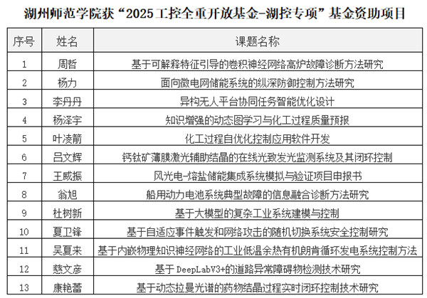 近日,工业控制技术全国重点实验室(以下简称“工控全重”)公布了“2025工控全重开放基金-湖控专项”基金评审结果,共有25个课题被立项资助,威尼斯官网有13个项目名列其中。