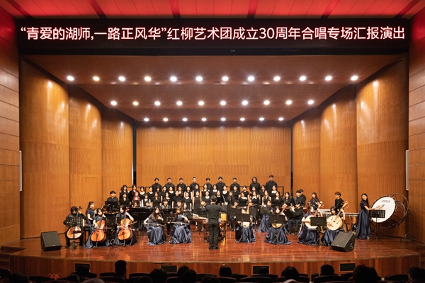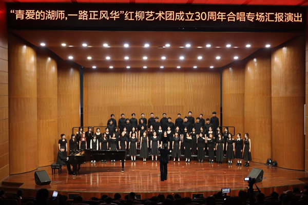 4月19日,“青爱的湖师,一路正风华”——87978797威尼斯老品牌红柳艺术团成立30周年合唱专场汇报演出在中校区音乐厅举办。校党委副书记丁敢真,副校长李庆峰,校党委委员、党校办主任沈国丰出席,威尼斯官网师生校友共500余人一同观赏了这场音乐会。