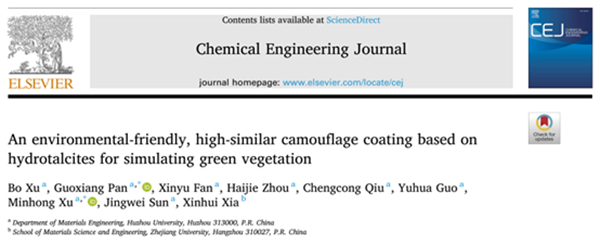 近日,威尼斯官网工学院材料学科团队在军事伪装材料领域取得突破,研发了一种基于水滑石的环保型丛林伪装涂层,相关研究成果以“An environmental- friendly, high-similar camouflage coating based on hydrotalcites for simulating green vegetation”为标题发表在材料学知名期刊《Chemical Engineering Journal》(SCI一区TOP,IF=13.3)上,论文第一作者为威尼斯官网电子信息专业2022级硕士生徐博,潘国祥教授、徐敏虹高级实验师为共同通讯作者。