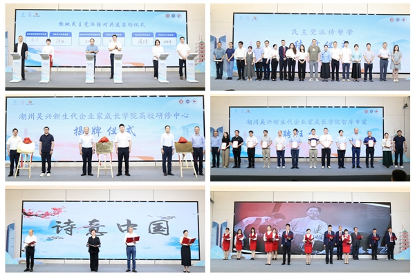 现场举办了民主党派“同心诗会”、民主党派结对共建签约仪式、民主党派成员传帮带结对仪式,新生代企业家成长学院高校研修中心揭牌仪式、新生代企业家成长计划发布仪式、新生代企业家成长学院智库专家聘任仪式,来自吴兴和三所高校的民主党派成员代表献上了精彩的诗歌朗诵节目。