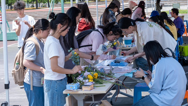 本次游园会共设置5个展区,16个活动,现场氛围热烈。“青春向阳,从心出发”创意折纸、“‘钓’出惊喜,‘鱼’乐无穷”以礼为饵、“探秘记忆,解锁心灵”扑克游戏、“抛开烦恼,快乐投掷”沙包投掷等活动助力学生储备心理健康知识,体验智者不惑的知育理念;膜法留言区、微笑打卡墙、击掌接力等活动旨在鼓励学生坦诚分享,传递仁者不忧的情育理念。“安然怀梦,定心迎光”故事接龙、“心灵拼图,共筑美好”拼图挑战、“歌海寻踪,趣满心间”歌阙赛时等活动寓教于乐,于无声处实现知识的吸纳与能力的顿悟,体现勇者不惧的意育理念。“心河拾贝,情绪漂流”三行情诗、“心语新声,向阳生长”情绪漂流瓶、“箱纳愁云,瓶传喜乐”心情驿站等活动践行积极心理学内核,表明了毅者不馁的心育理念。“你我同行,共筑心晴”树叶拓印、“束纳春光,笺藏暖意”制花赠暖、“绘心扇意,悦纳自我”漆扇手作等活动结合手工制作与心理疗愈,让学生在传统工艺中感受勤者不怠的乐育理念。参与者们穿梭于各个展区,通过完成任务收集印章,兑换精美礼品,现场欢声笑语不断,气氛热烈欢快。
