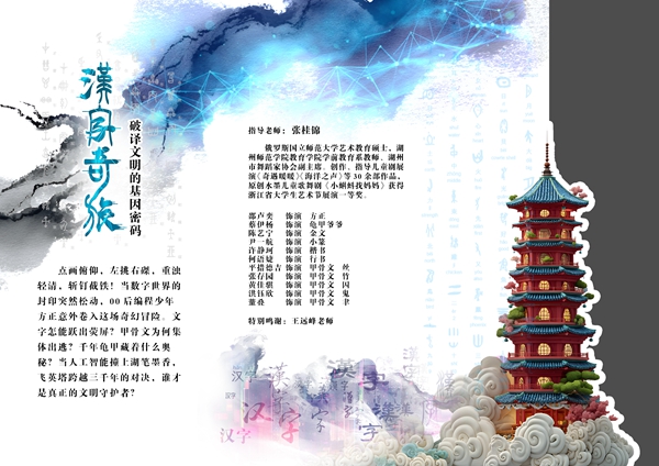 点画俯仰,左挑右磔,重浊轻清,斩钉截铁!当数字世界的封印突然松动,00后编程少年方正意外卷入这场奇幻冒险。文字怎能跃出荧屏?甲骨文为何集体出逃?千年龟甲藏着什么奥秘?当人工智能撞上湖笔墨香,飞英塔跨越三千年的对决,谁才是真正的文明守护者?……一切答案尽在原创儿童剧《汉字奇旅——破译文明的基因密码》,5月30日,让我们相约大会堂,见证传统与未来最惊艳的相遇!