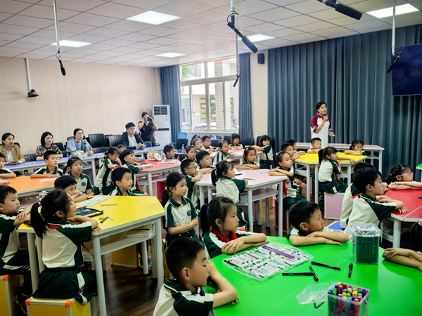 活动伊始,主讲人以谜语引入主题——蚕与蚕丝,服务队成员为大家展示了相关工艺品。接着,主讲人通过讲故事的形式让孩子们了解非遗文化,简要介绍了湖州本地的蚕丝文化与丝绸产业规模。在场的孩子们都惊叹于自己家乡在丝织业方面的重要贡献,争先恐后地举手发言表达自豪感和认同感。随后,学生们展开“南下丝绸旅行”,先后领略了湖州、杭州、海南三地的非遗文化风采。