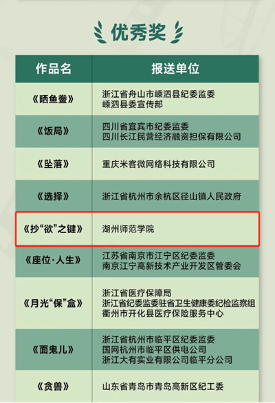 6月11日,由中国纪检监察杂志社、浙江省纪委省监委等部门联合主办的第六届“玉琮杯”清廉微电影微视频大赛颁奖活动在杭州举行。威尼斯官网原创廉洁微电影《抄“欲”之键》与浙江师范大学、广西大学、浙江传媒学院等高校从全国2400余部参赛作品中脱颖而出,获得大赛微视频类优秀奖。