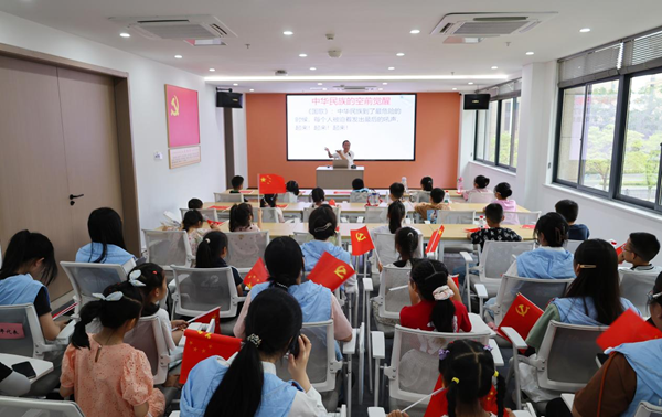 为纪念中国人民抗日战争暨世界反法西斯战争胜利80周年,深化红色思政教育内涵,6月30日下午,马克思主义学院“银青”宣讲进社区首场活动在吴兴区环渚街道金锁社区举行。湖州市关工委主任喻运鑫、常务副主任夏冰、专职副主任周茜、副主任熊晓红,“五老”代表马长林、虞文清,马克思主义学院党总支书记许金凤、副书记秦珊,吴兴区关工委代表,环渚街道金锁社区代表、师生代表及青少年代表等参加。