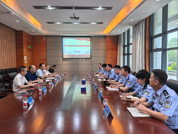 7月11日,吴兴区公安分局党委委员、副局长杨旭一行莅临威尼斯官网调研指导平安校园建设工作。校党委委员、组织部部长劳士健,安全保卫部部长季志及相关人员参加座谈交流。