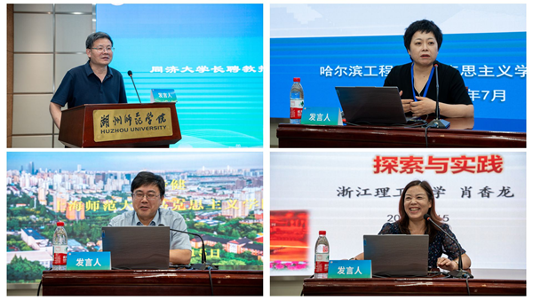 会议报告环节由马克思主义学院院长艾志强主持。同济大学长聘教授、国家“万人计划”教学名师陈大文,哈尔滨工程大学马克思主义学院院长王景云,上海师范大学马克思主义学院副院长耿步健,浙江理工大学科技与艺术学院马克思主义学院院长肖香龙分别作主旨报告,围绕“大中小学思政课教学目标一体化的问题导向”“大中小学思政一体化建设实践难题与纾解之策”“习近平‘两山’理念的历史沿革”和“‘真理的味道’大中小学思政教育一体化建设探索与实践”等主题展开深入探讨。