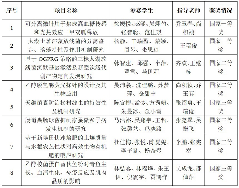 第十届全国大学生生命科学竞赛(科学探究类)获奖情况