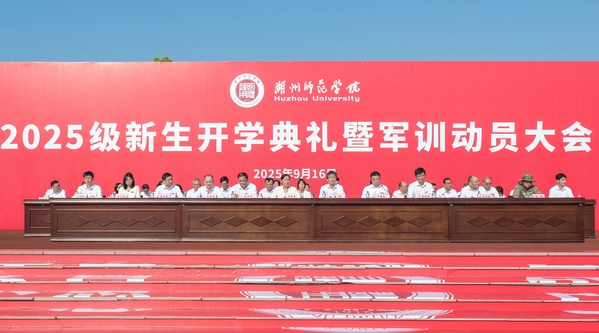 9月16日上午,2025级新生开学典礼暨军训动员大会在长兴广场举行。校党委书记许慧霞,校长盛况,校党委副书记陈永华、丁敢真,校纪委书记任伟海,副校长李庆峰,副校长、校党委委员楼建林,校党委委员、组织部部长劳士健,校党委委员、宣传部部长朱小芳,校党委委员、党校办主任沈国丰,中国人民解放军某部队教导员、军训旅旅长高杰出席。学校相关部门及各二级学院负责人、教师代表、辅导员代表、新生班班主任以及全体新生参加。开学典礼由丁敢真主持。