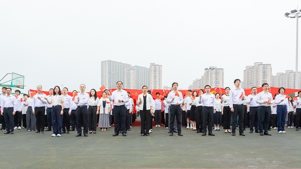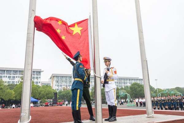 10月1日上午,学校举行“庆祖国华诞,展青年担当”主题升旗仪式,庆祝中华人民共和国成立76周年。校领导班子成员,相关职能部门负责人,二级学院党委(总支)书记、副书记、教师代表、学生代表等约1500人参加。